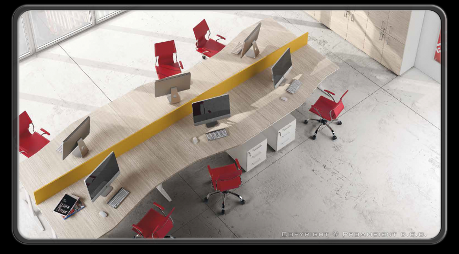 Oblikovno in barvno usklajene večje pisarne.