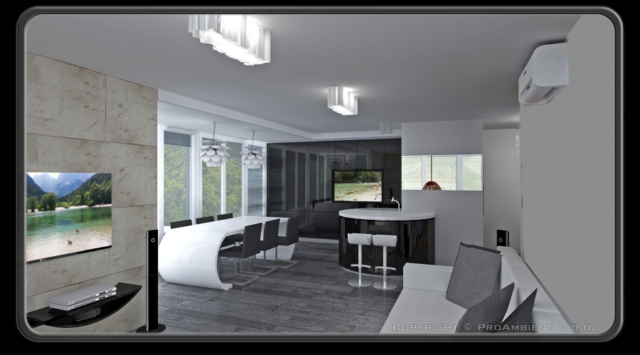 3D realta virtuale. Appartamento a Nova Gorica. Moderno nero lucido.