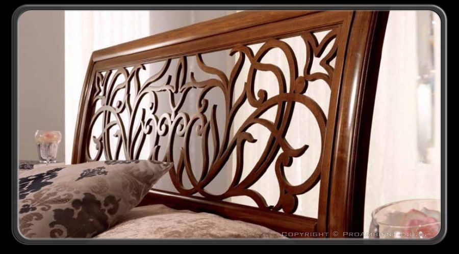 Bogato izrezljano ali v usnje tapecirano vzglavje postelje poudarja klasičen stil spalnice.