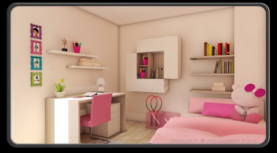 Otroška soba se glede na starost in potrebe otroka skozi leta spreminja. Določeni kosi pohištva ostajajo enaki (garderobna omara), nekateri drugi se spreminjajo (previjalna podloga, pisalna miza, postelja).