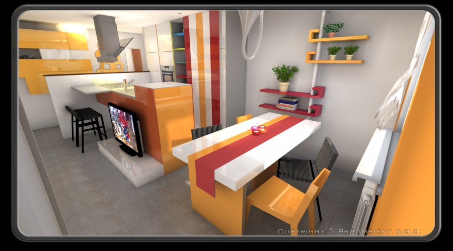 KUHINJA, jedilnica in dnevna soba v enem PROSTORU